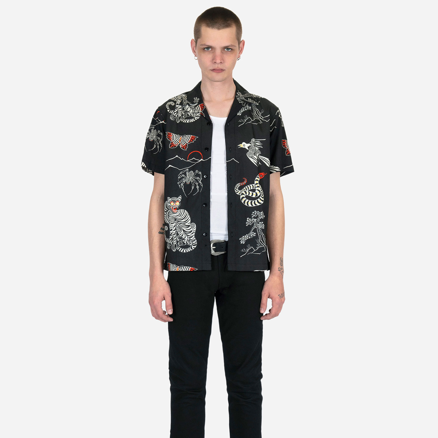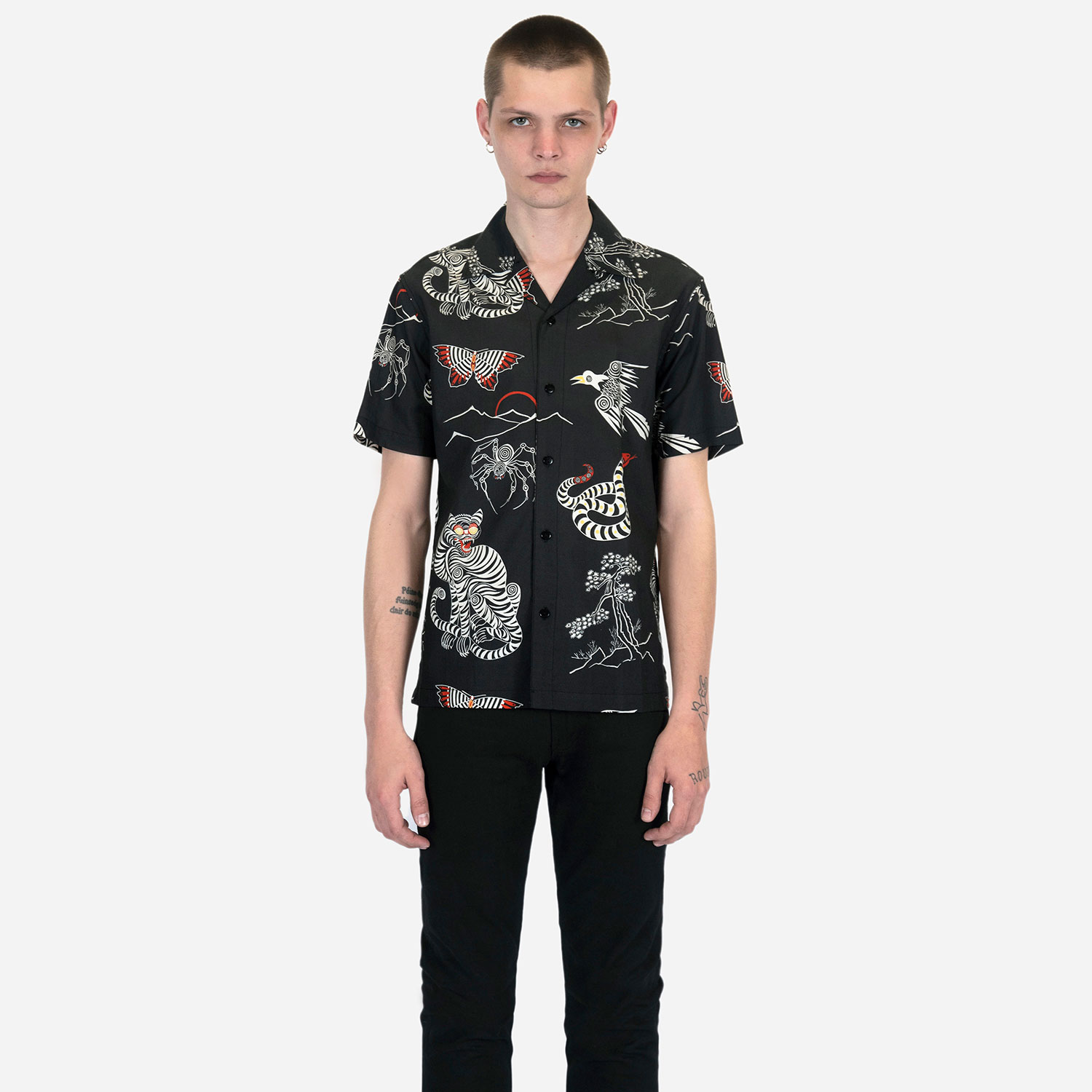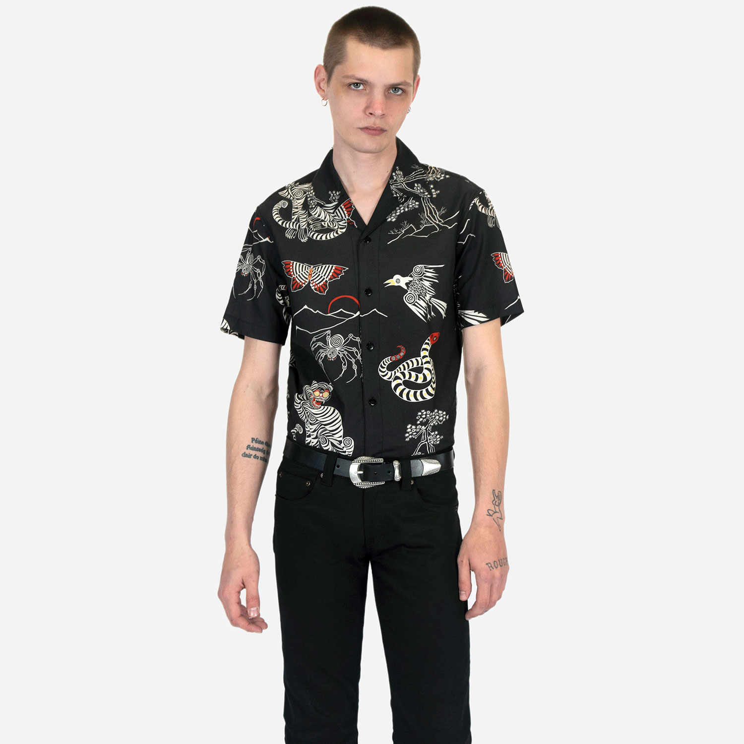 The Art of War is a short sleeve, button up camp shirt with spread collar in our new True fit. It features our animal motif artwork and is made from our custom woven, STH Clothier cotton-modal blended fabric. The strong cotton offers durability, and the modal allows for a soft texture that drapes perfectly.
