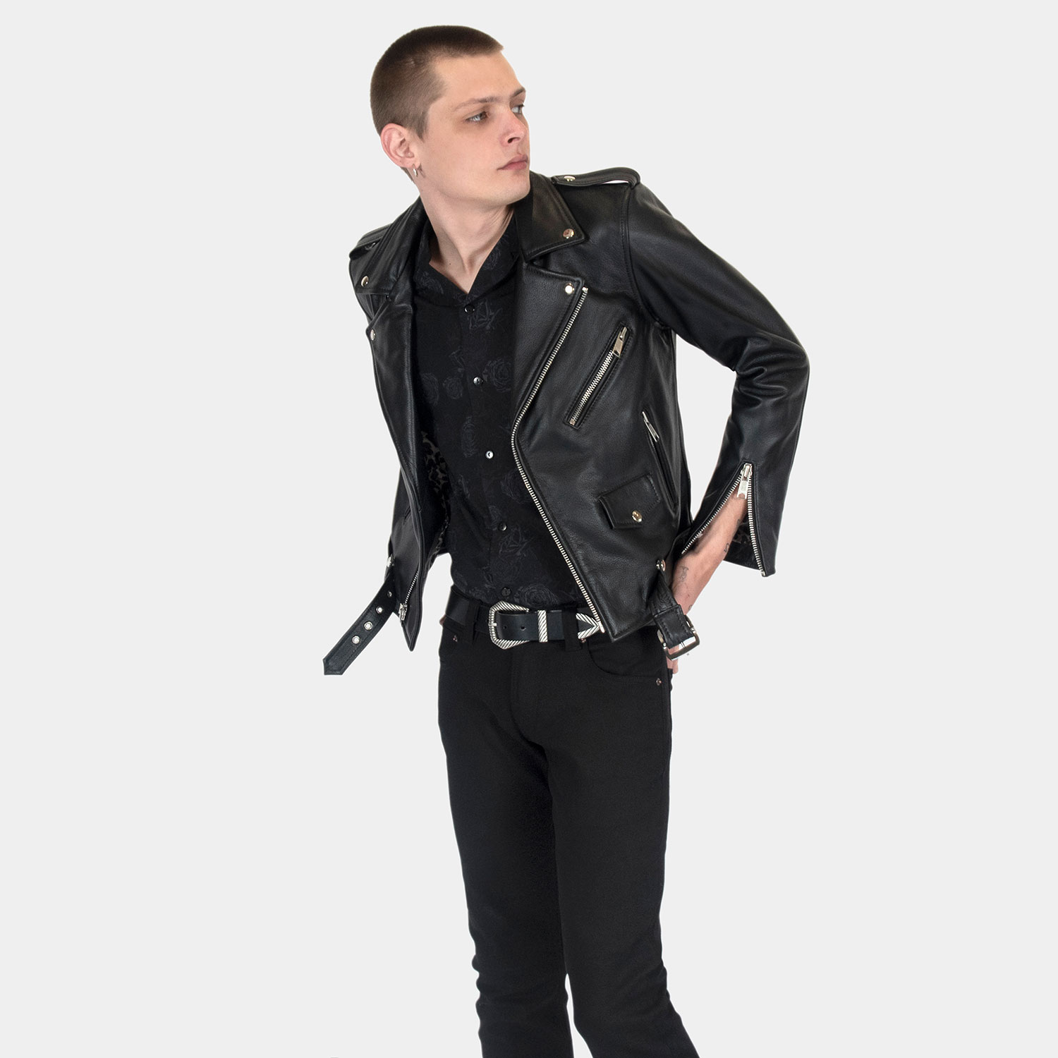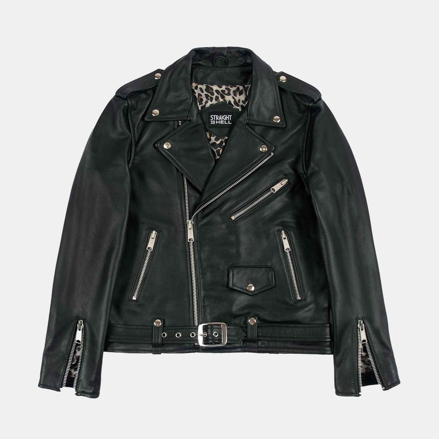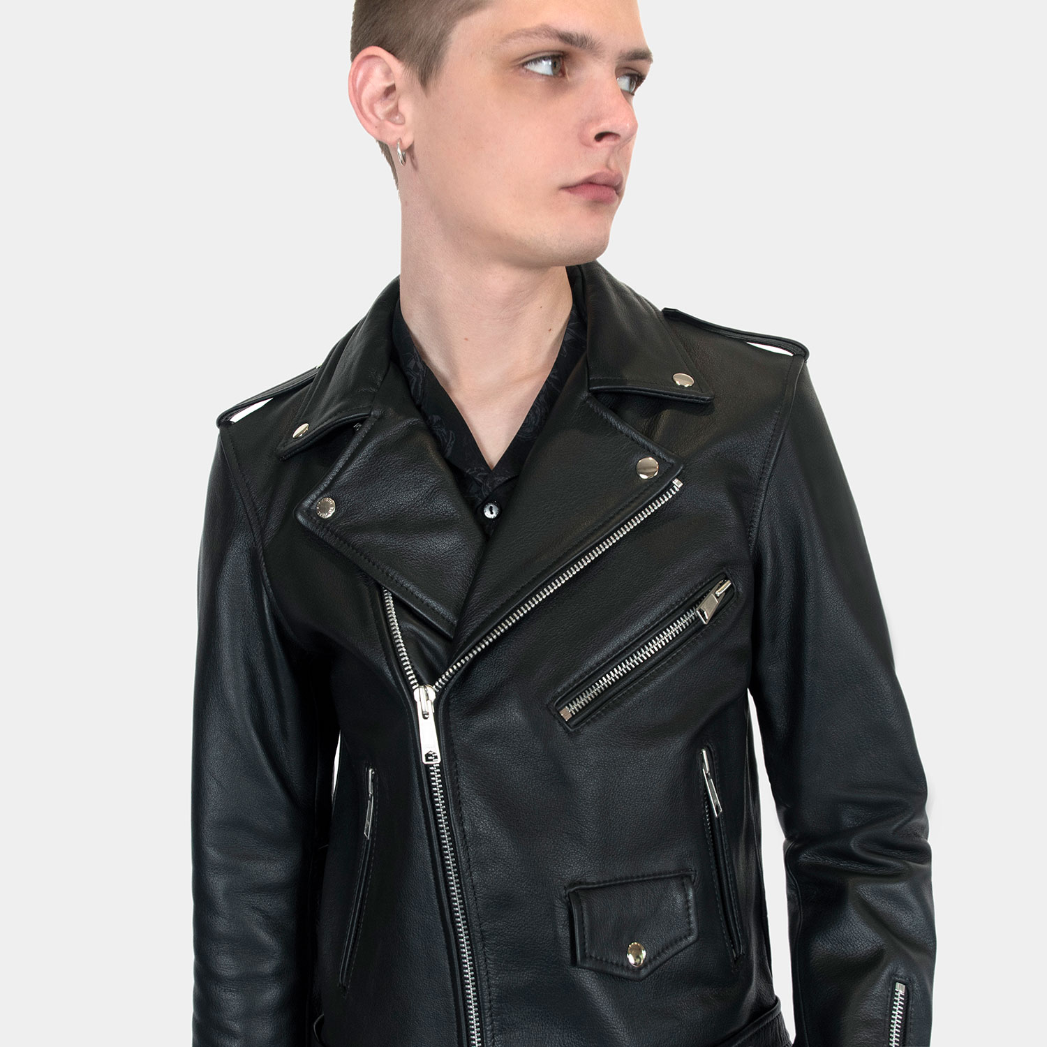 The Commando is our most traditional and recognizable leather jacket, now made with black leather, wide silver zippers, and redesigned removable belt. The Commando Lightweight is made with leopard print lightweight lining, making it ideal for warmer climates or seasons. This is our new Modern fit. Premium leather relaxes and conforms to your shape and breaks in perfectly.