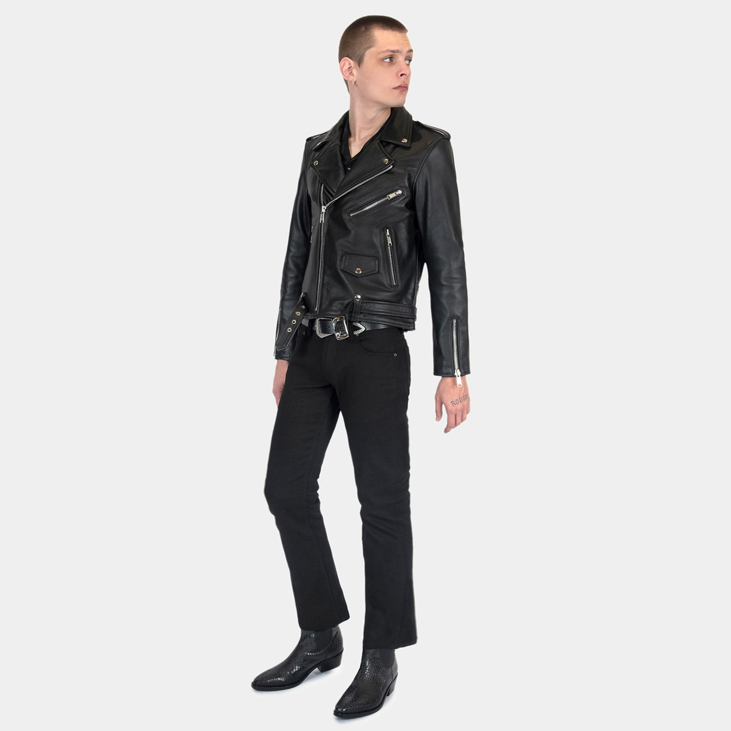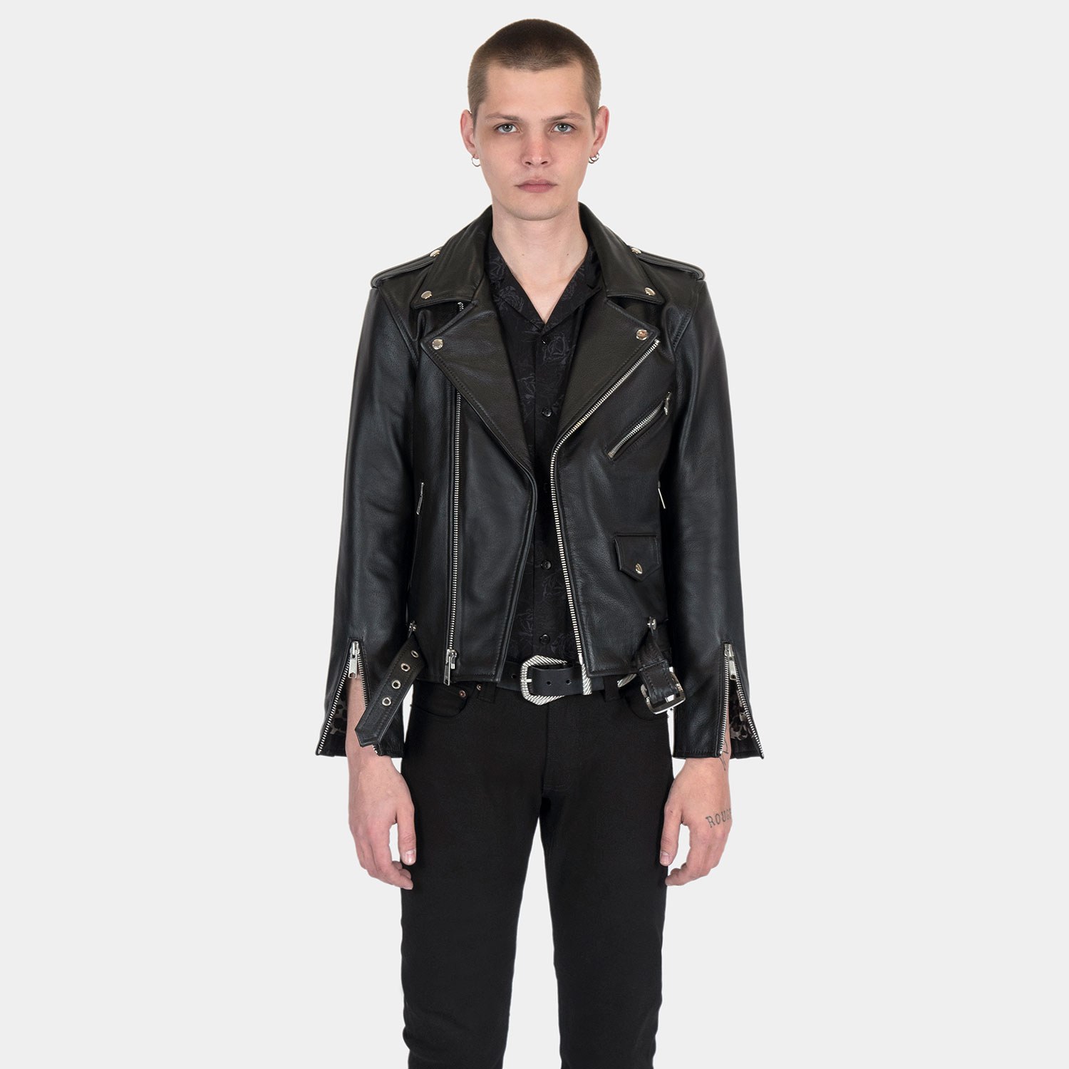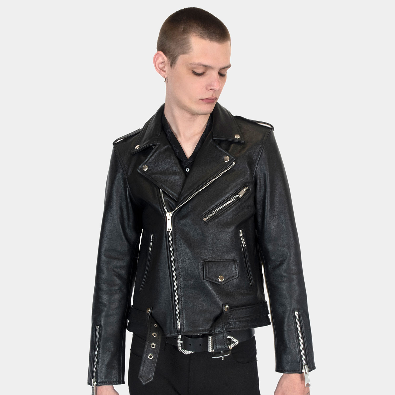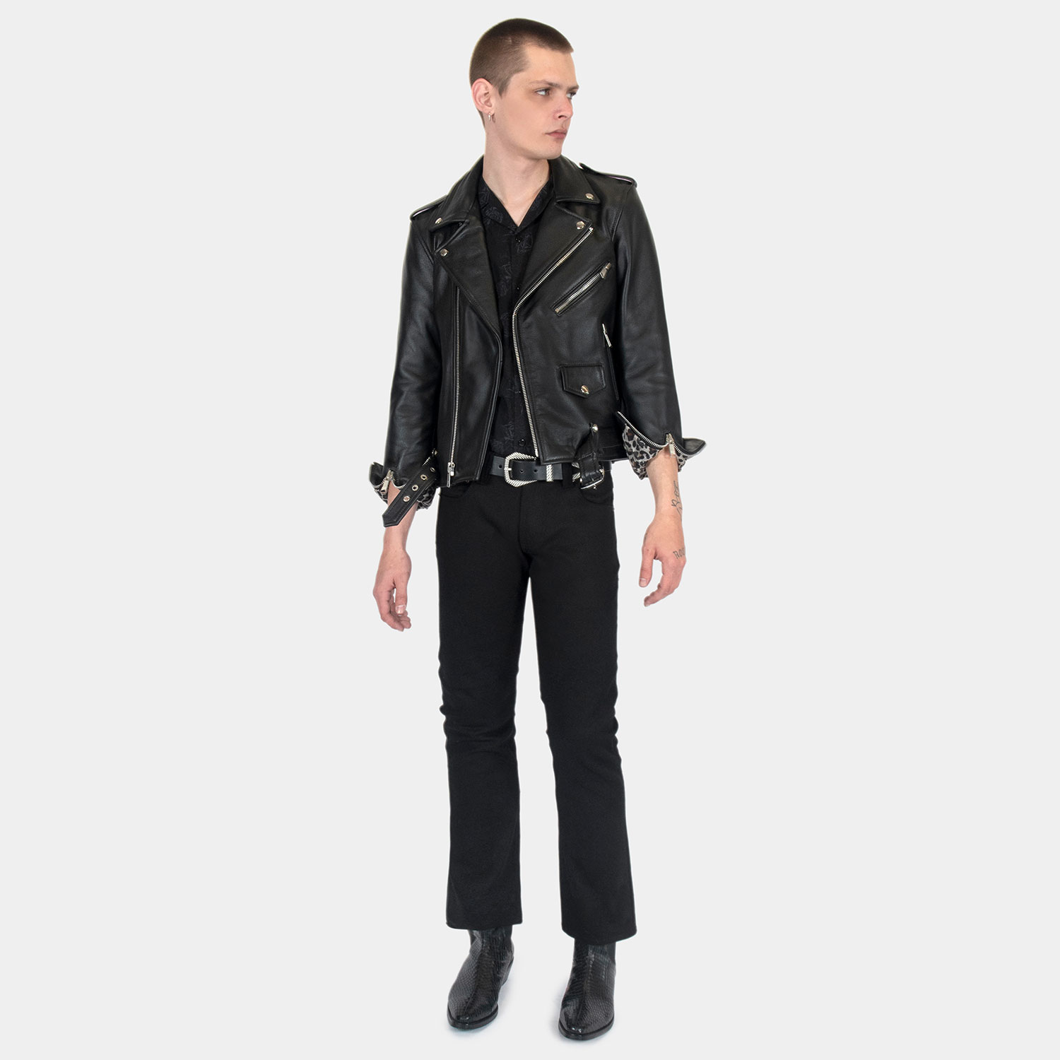 The Commando is our most traditional and recognizable leather jacket, now made with black leather, wide silver zippers, and redesigned removable belt. The Commando Lightweight is made with leopard print lightweight lining, making it ideal for warmer climates or seasons. This is our new Modern fit. Premium leather relaxes and conforms to your shape and breaks in perfectly.