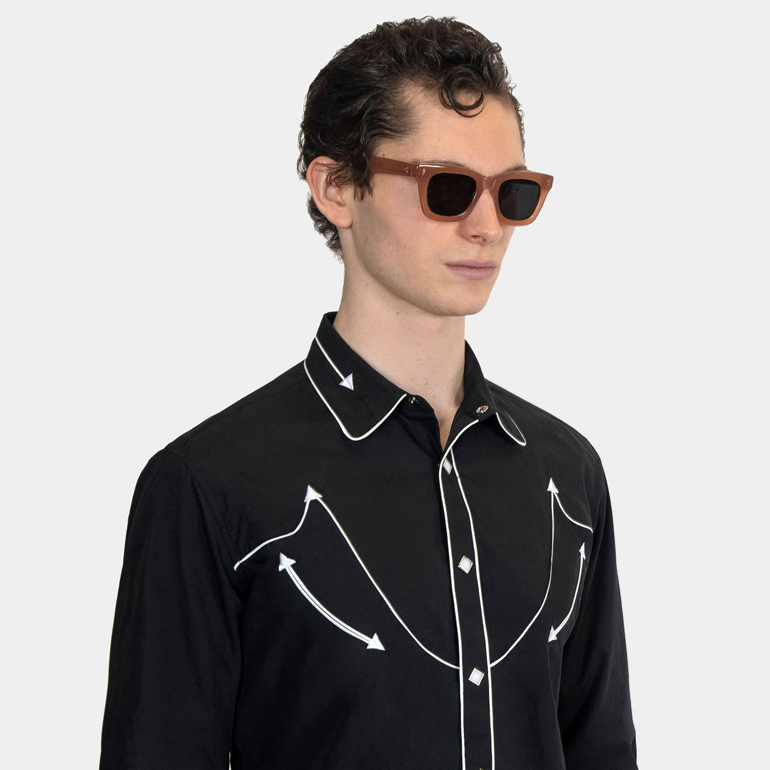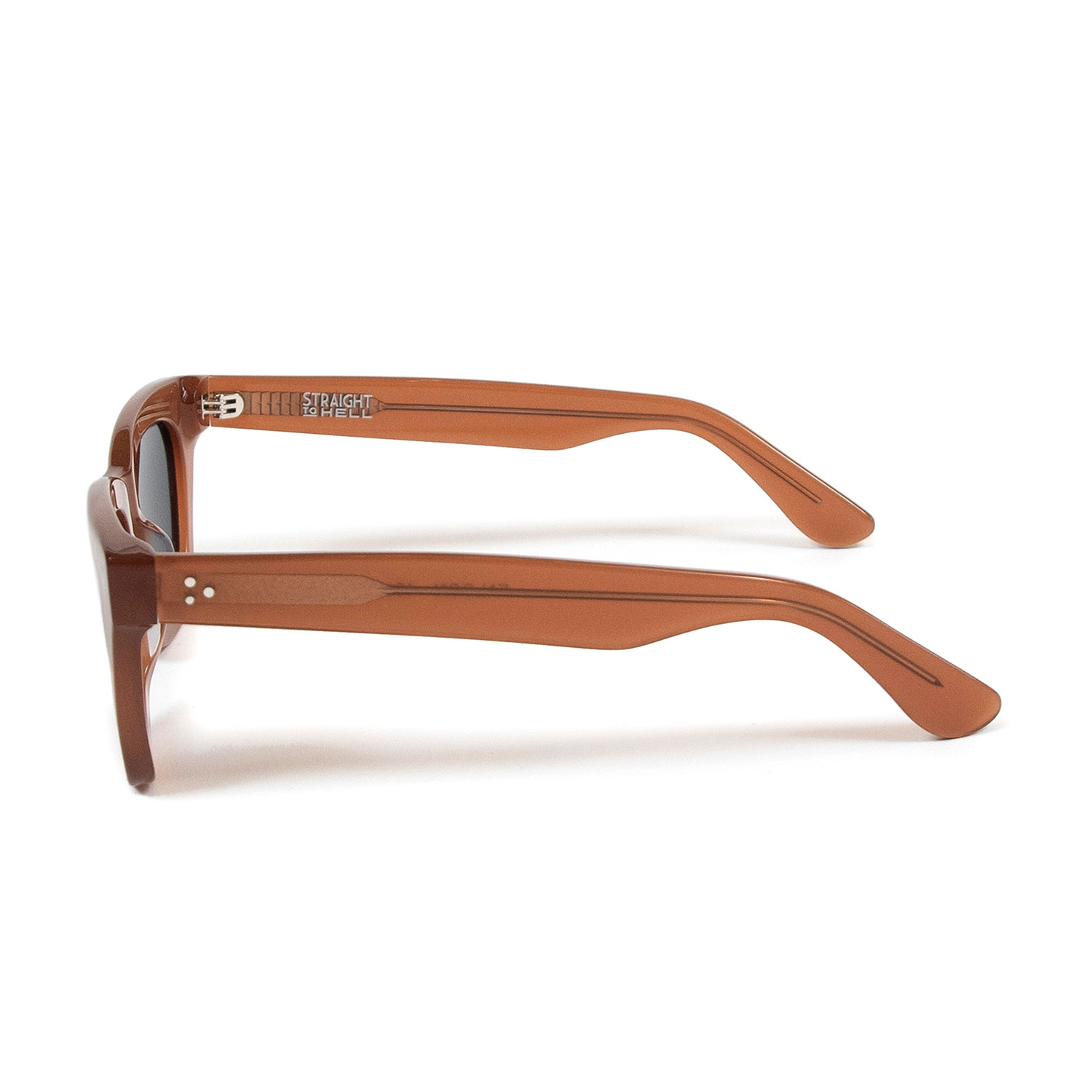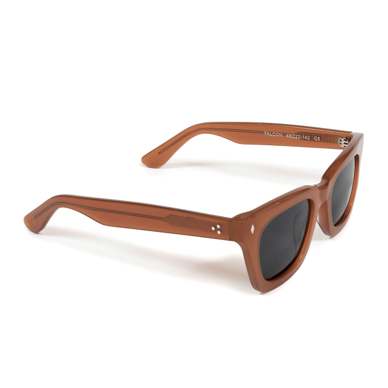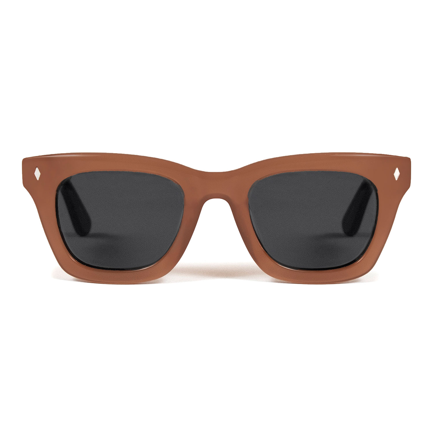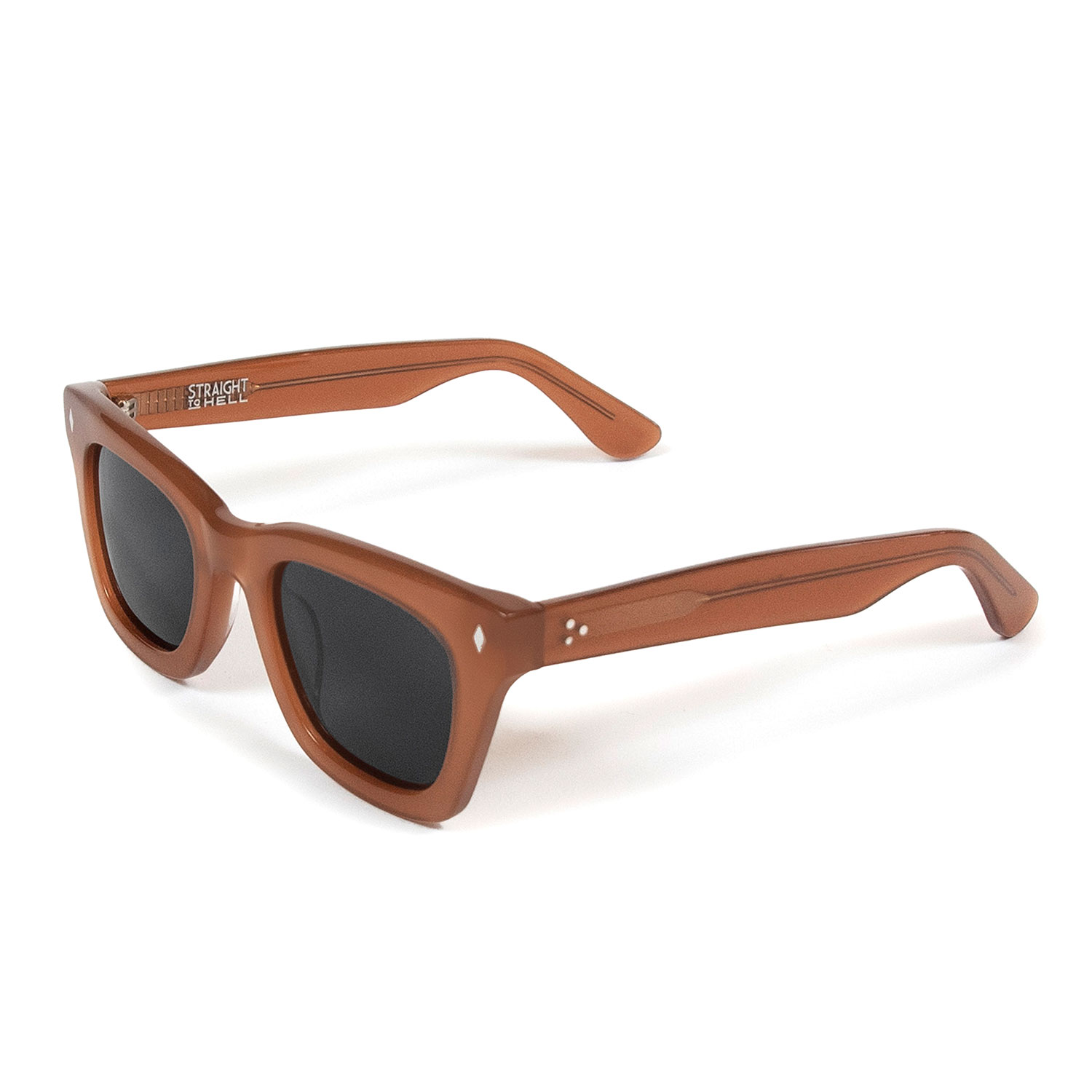 A classic sunglasses shape, always cool and timeless. Hand-crafted, medium brown acetate frames with polarized lenses.