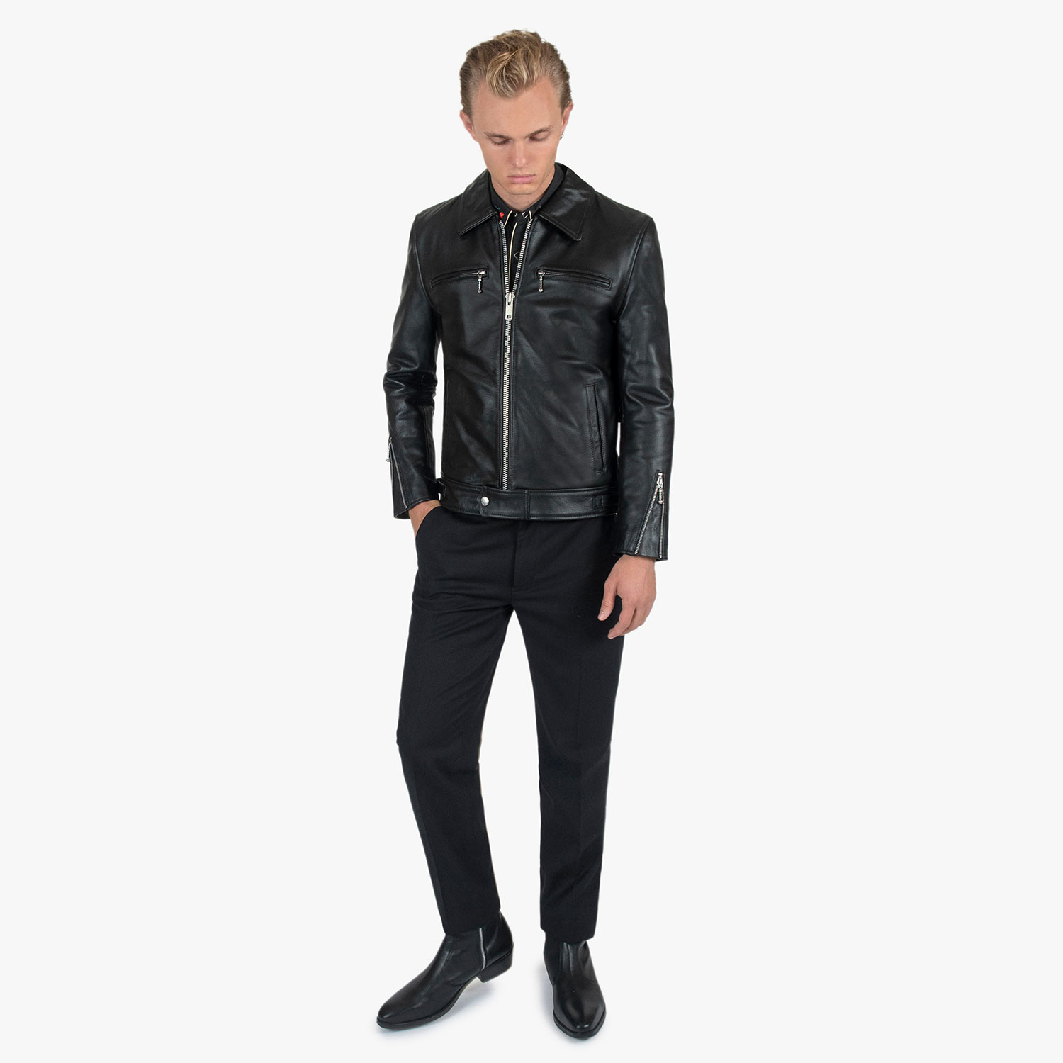 The Idol leather jacket offers clean lines and classic style. It features a traditional collar, duel chest zipper pockets, and vertical zipper closure with bonus lower leather snap closure. This is our new Modern fit. Premium leather relaxes and conforms to your shape and breaks in perfectly.