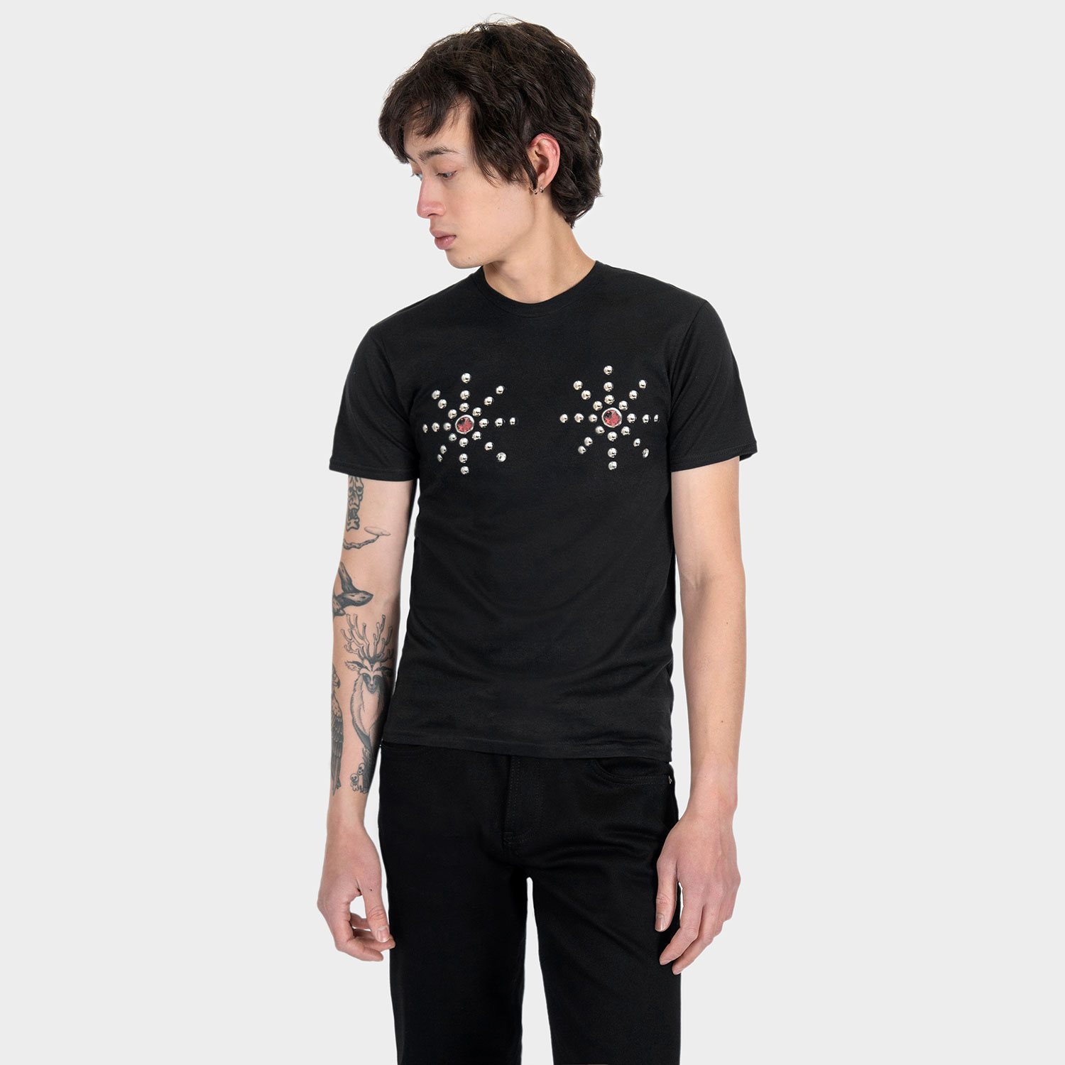 A studs pattern you can really get behind, if you know what we’re saying. Wear Pretty Vacant at your own risk. Short sleeve t-shirt made from soft cotton. Printed in Chicago. This is our Everyday fit.